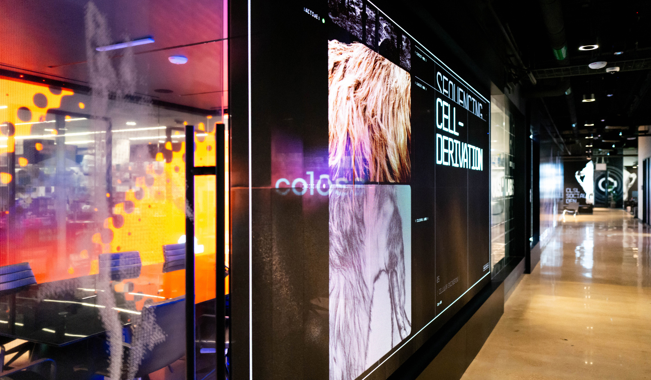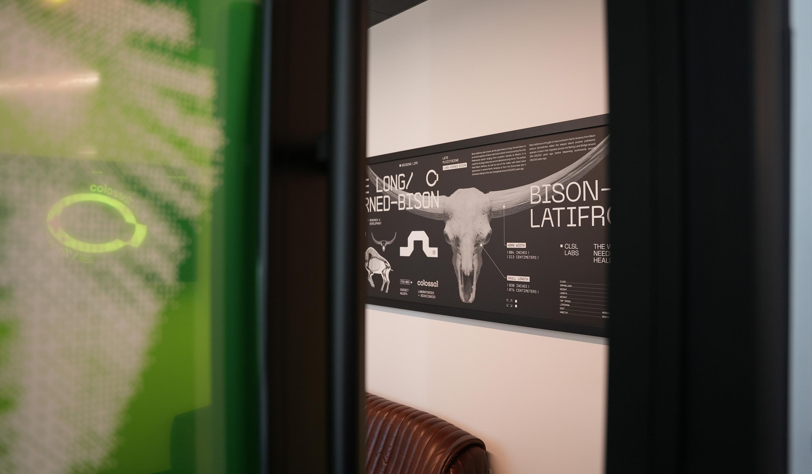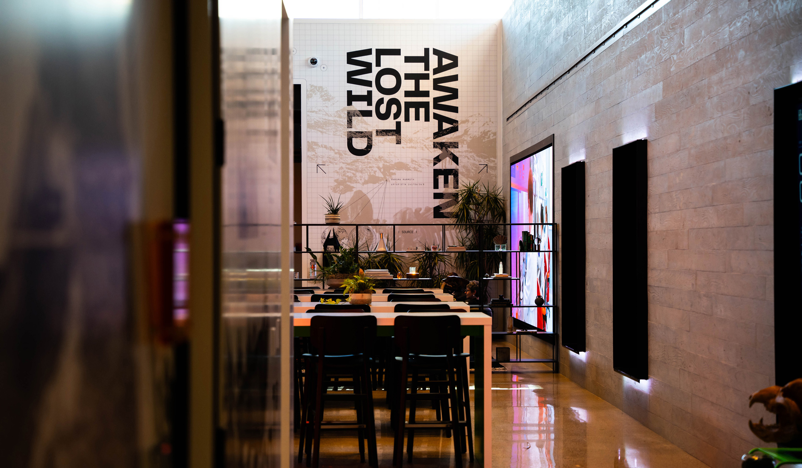 As the co-creative directors for Colossal’s new headquarters, we partnered with CEO Ben Lamm and his Colossal design team to define and execute the brand throughout the space. Our work included environmental design, wayfinding systems, murals, digital storytelling, LED screen content, projection mapping, print design, and interior design direction. Under the hands-on creative direction of Ben, we developed the visual language and collaborated closely with contractors to ensure every branded element was realized with precision to deliver on Ben’s creative vision. This office marks over 10 years working with Ben on his spaces and brand designs.