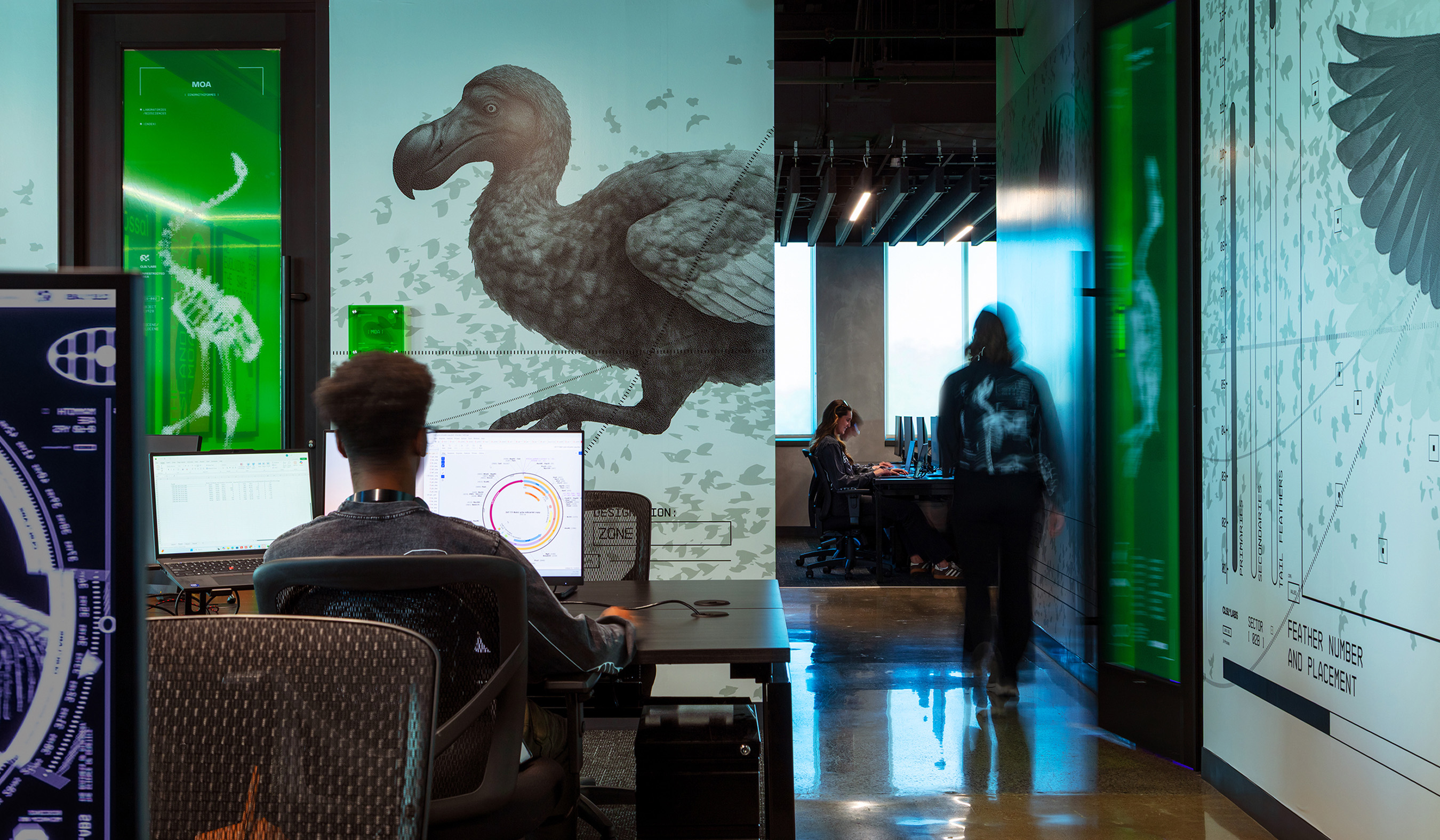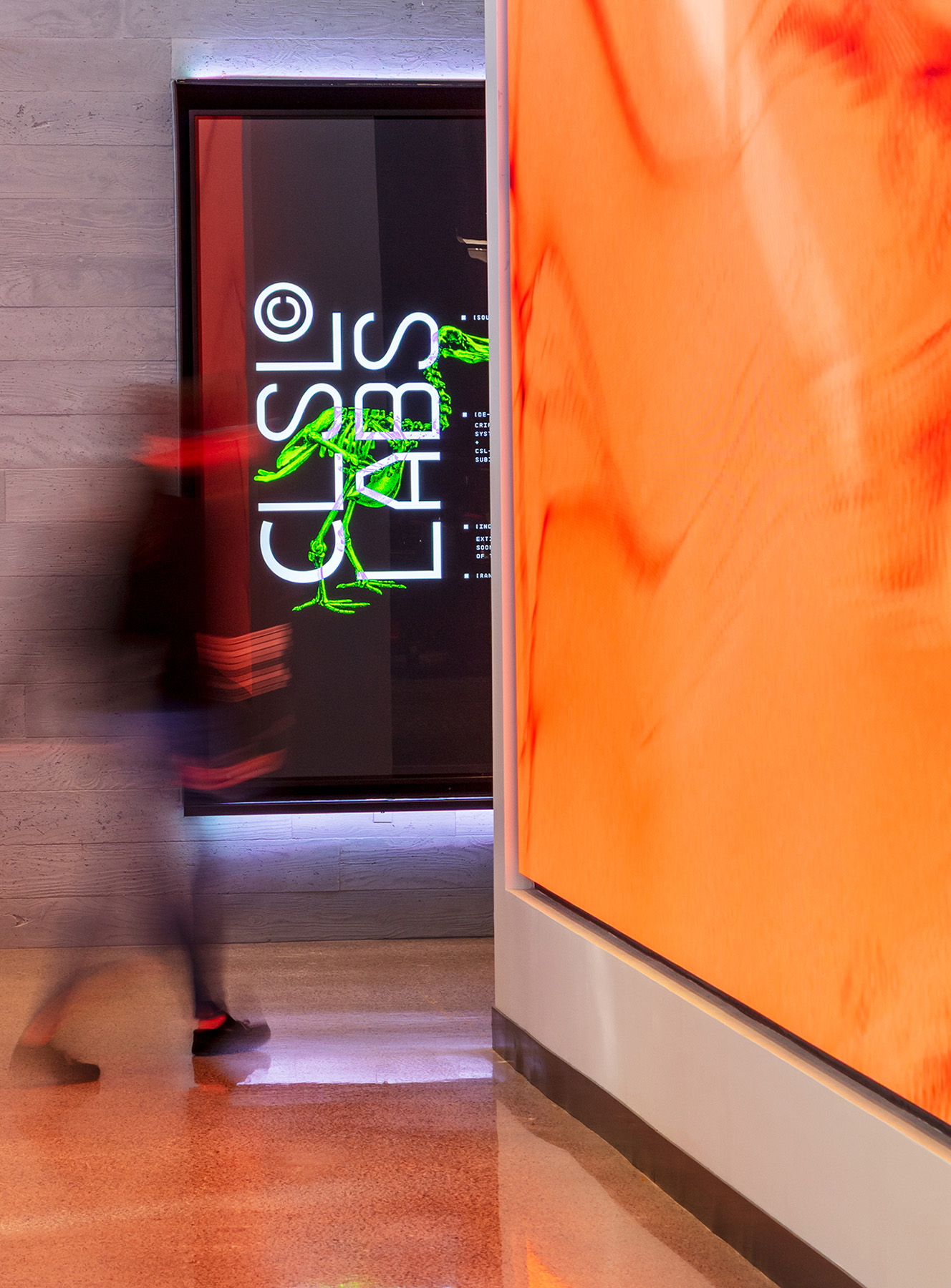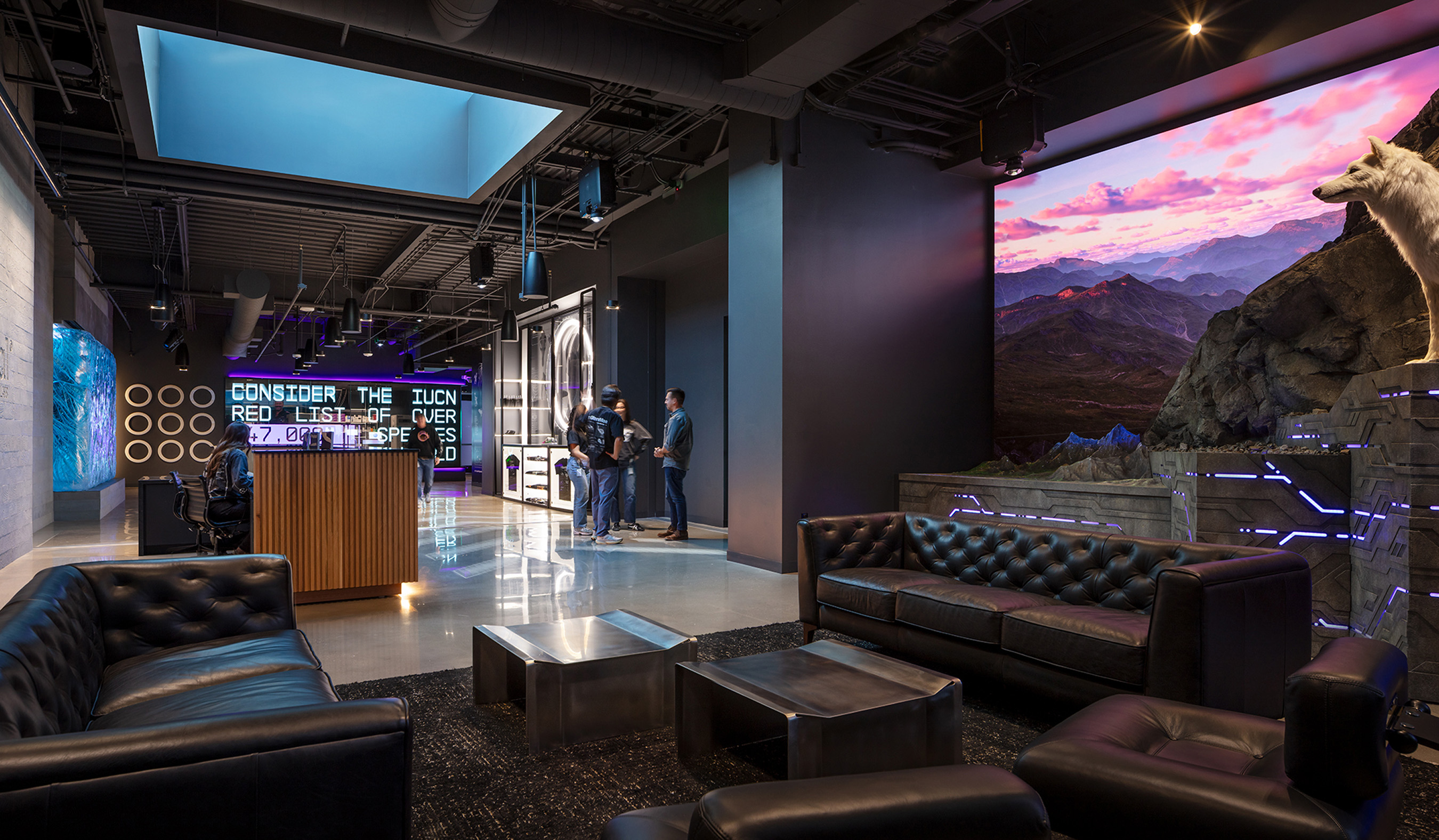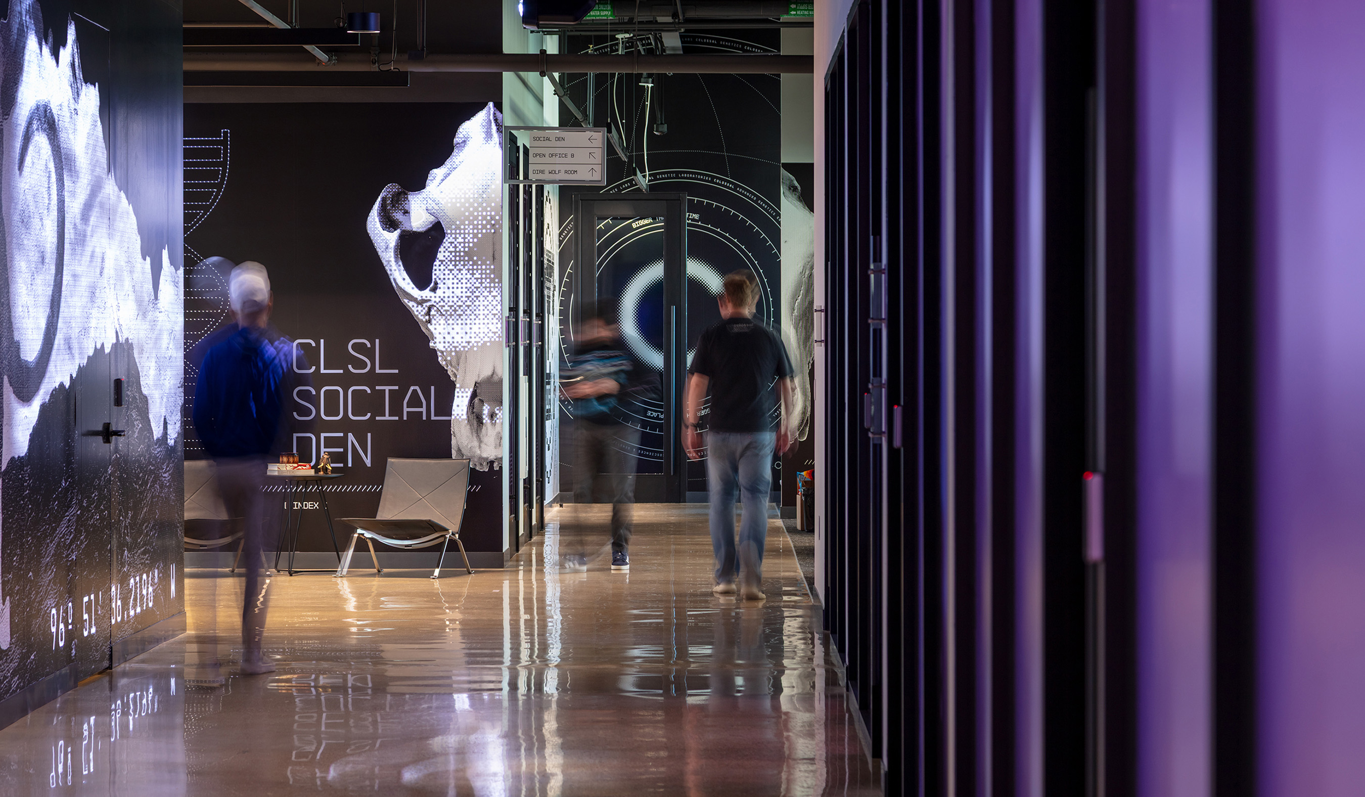 As the co-creative directors for Colossal’s new headquarters, we partnered with CEO Ben Lamm and his Colossal design team to define and execute the brand throughout the space. Our work included environmental design, wayfinding systems, murals, digital storytelling, LED screen content, projection mapping, print design, and interior design direction. Under the hands-on creative direction of Ben, we developed the visual language and collaborated closely with contractors to ensure every branded element was realized with precision to deliver on Ben’s creative vision. This office marks over 10 years working with Ben on his spaces and brand designs.